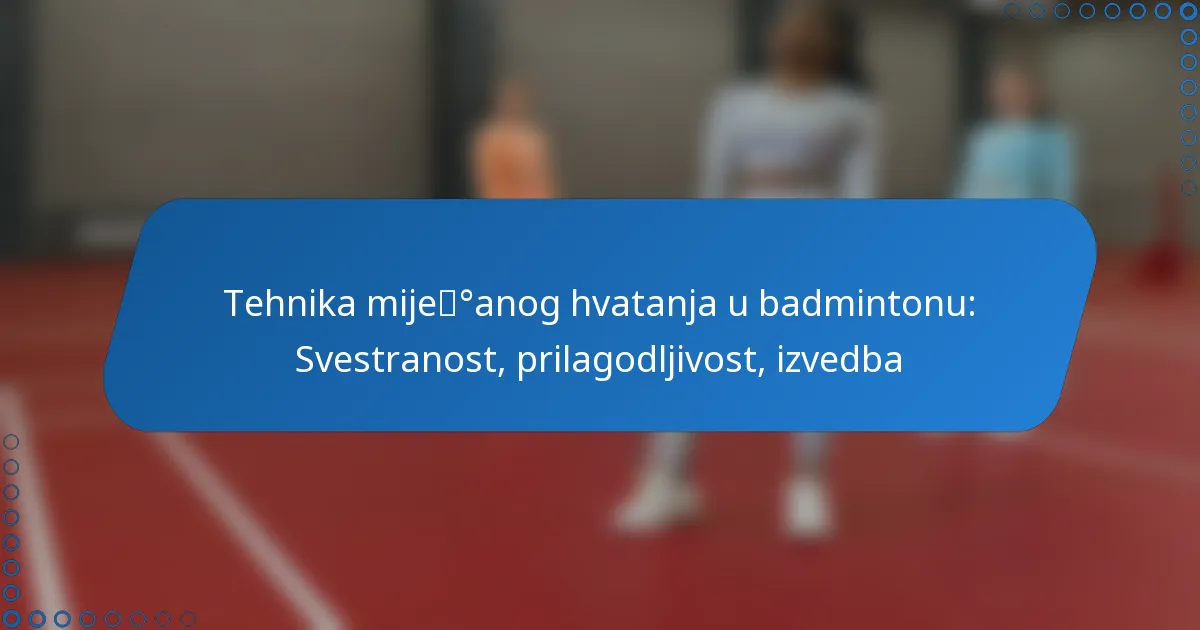 Tehnika miješanog hvatanja u badmintonu je dinamičan pristup koji spaja forehand i backhand hvatanje, pružajući igračima poboljšanu svestranost i prilagodljivost na terenu. Ovladavanjem ovim hvatom, sportaši mogu poboljšati raznolikost svojih udaraca i obrambenih sposobnosti, što dovodi do boljih ukupnih performansi tijekom mečeva. Ova tehnika je ključna za brze prilagodbe i učinkovito pokrivanje terena, čineći je vrijednom imovinom za natjecateljske igrače.